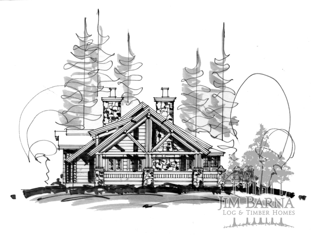 “Idaho Modern”: Wrapped in the rugged exterior of frontier living in an interior with all the modern conveniences. A covered entry is denoted by a wood archway that leads through double European style doors to a vaulted Great Room. Round log trusses span the breadth of the house to reveal a spacious Great Room, Dining Room, and Kitchen combination. A massive stone fireplace and lots of glass add additional drama. The main bedroom is truly suited for a Master Fireplace; the morning bar, whirlpool bath, large walk in closet, master terrace, and hot tub work to relieve the saddle sores of any modern “cowboy”.
