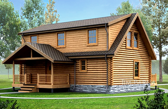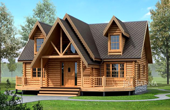 TA unique open gable with round top windows is the focal point to this exquisite log home plan. A front covered porch continues as a sun deck wrapping around the sides and allowing access to the master suite. Inside you’ll find a living room, dining room and kitchen with a large island and grilling porch for the family chef. This master suite is privately placed on the main level while additional bedrooms are located upstairs. The spacious upstairs has a loft with full bathroom and two bedrooms with dormer windows and private sun decks.