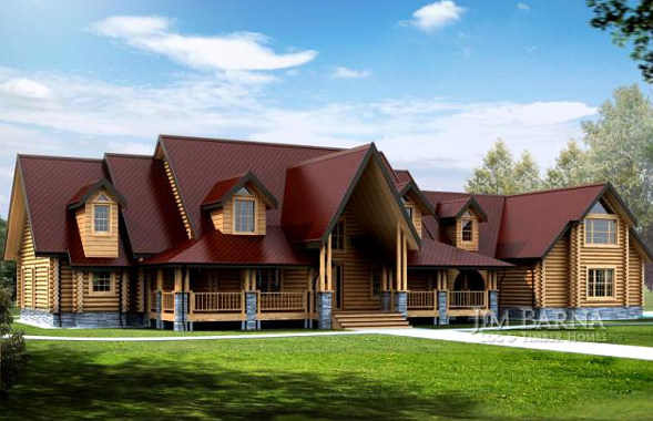 This is the master of log homes and has double column rock pillars adorning the front wrap porch. French doors and fireplace bring the outside into the family and great room combination while the fully equipped kitchen enjoys an enchanting window view. Just feet from the kitchen is an office with fireplace and large laundry room with sink and storage. An expansive master suite has private access to rear deck and an elaborate bathroom with whirlpool tub and large closet. Three bedrooms with private baths located upstairs share a spacious loft area and have access to expansive future rooms.