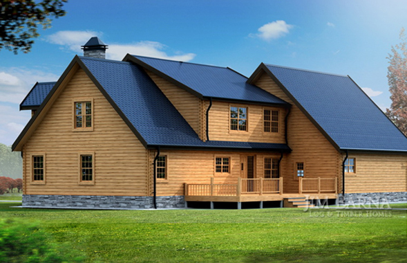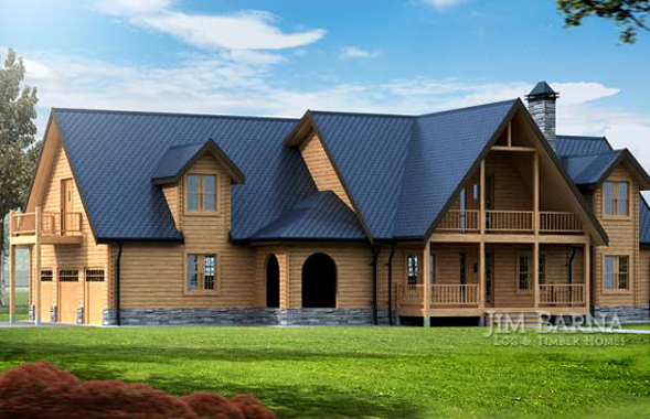 In this two-story standard Jim Barna log home plan you’ll find a large bonus room with private deck, great for entertaining ! A spiral staircase in the entry looks more like a work of art and leads to two bedrooms and loft area above while the main floor houses the private master suite. For family gatherings and mealtime, a large dining room joining the kitchen has French doors to the rear deck as well as a half bath for added convenience. Opposite the garage wing is a luxurious master suite with fireplace and private bathroom containing a large walk-in closet and whirlpool tub.