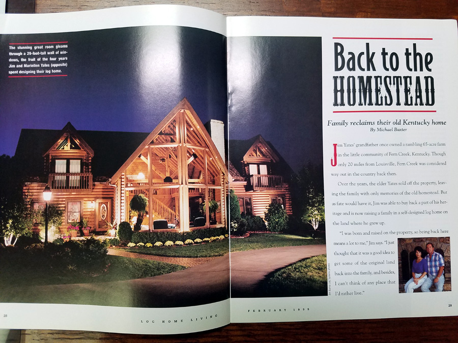 Early one cold, January morning I answered a call. The man’s voice was warm and rough with the sound of someone whose normally-positive attitude was being put to the test. Jim Yates and his wife Mariellen had recently lost their home to fire. Just before Christmas, a fire started in the sub-floor while they were visiting friends. Tragically, they also lost their beloved dog. Jim and Mariellen decided to face this challenge with determination, creativity and passion. Their insistence on quality and the ability to customize details of their home led them to choose Jim Barna Log Homes about thirty years before. With confidence now they called on Jim Barna in their time of need to rebuild their dream home.